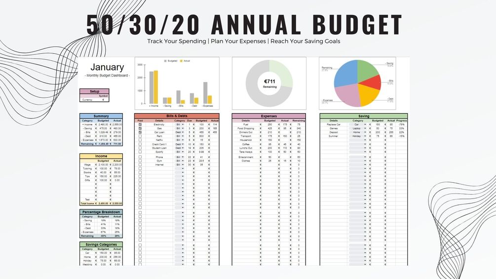Unlock financial control & freedom with our excel & google sheets budget template. Seamlessly track income, expenses & saving goals. Tailored for personal & business use, this template empowers you to manage your finances effectively. Take the guesswork out of budgeting & achieve your financial objectives with ease. 2 files included in the purchase (Annual Budget Planner file & Annual Budget Planner Backup file). Files include instructions on how to use & reuse the planner.
