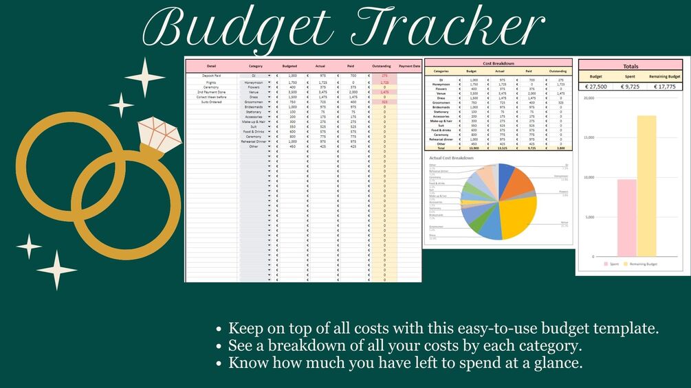 Prepare for your dream wedding stress-free with our Wedding Budget and Planner Excel & Google Sheets Template. This comprehensive spreadsheet simplifies wedding planning by helping you manage expenses, create timelines, and stay organized. Achieve the perfect wedding without breaking the bank. Get your template today and start planning with confidence! 2 files included in the purchase (Complete Wedding Template file & Complete Wedding Template backup file).